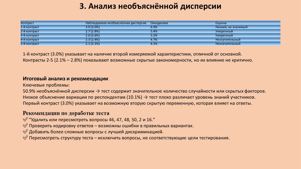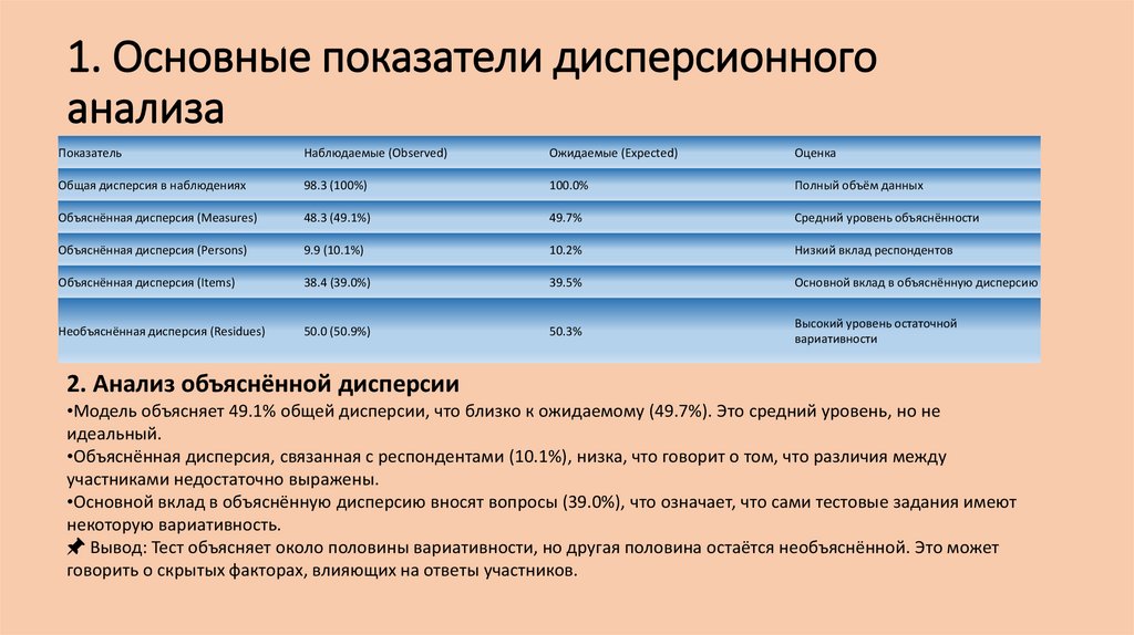 3.Результаты и анализ – Основные выводы и статистические