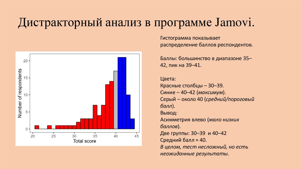 Дистракторный анализ в программе Jamovi.Гистограмма показывает