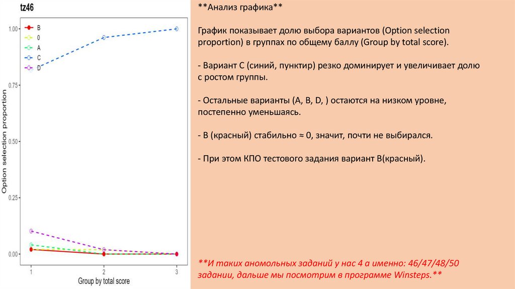 **Анализ графика**График показывает долю выбора вариантов (Option selection