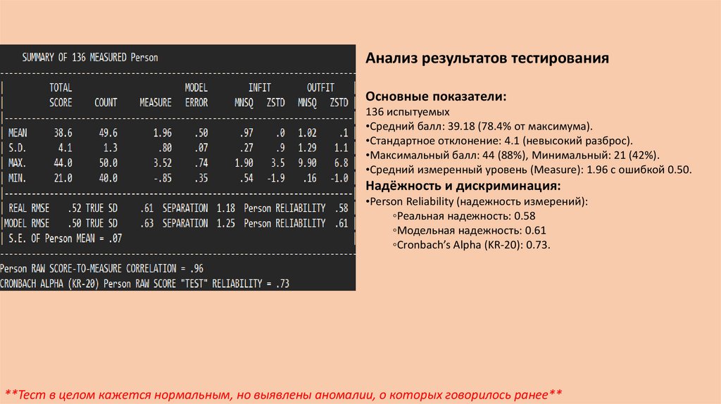 **Тест в целом кажется нормальным, но выявлены аномалии, о которых говорилось ранее**