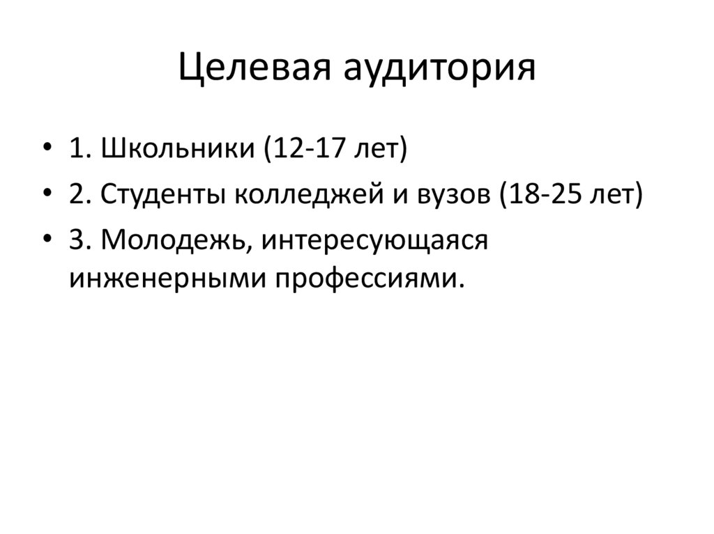 Целевая аудитория• 1. Школьники (12-17 лет)