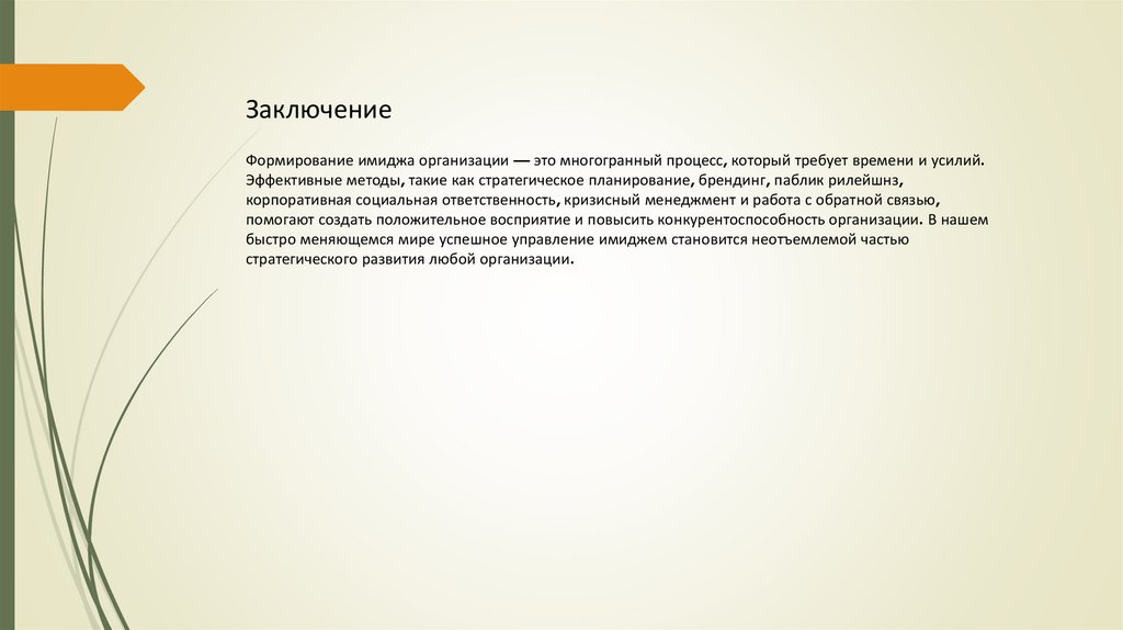 ЗаключениеФормирование имиджа организации — это многогранный процесс, который требует времени и усилий.