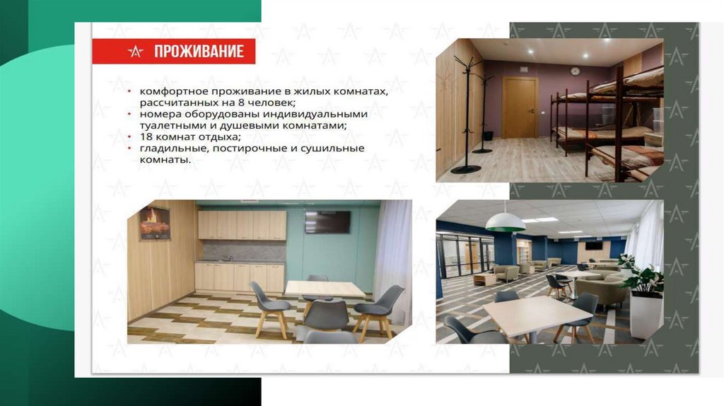 корпусах в комнатах на 4-6 человек. Душевые комнаты