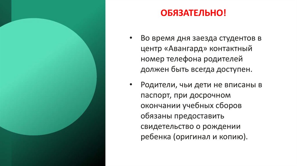ОБЯЗАТЕЛЬНО!• Во время дня заезда студентов в