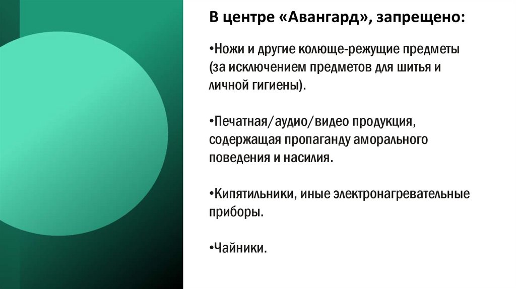 В центре «Авангард», запрещено:•Ножи и другие колюще-режущие предметы