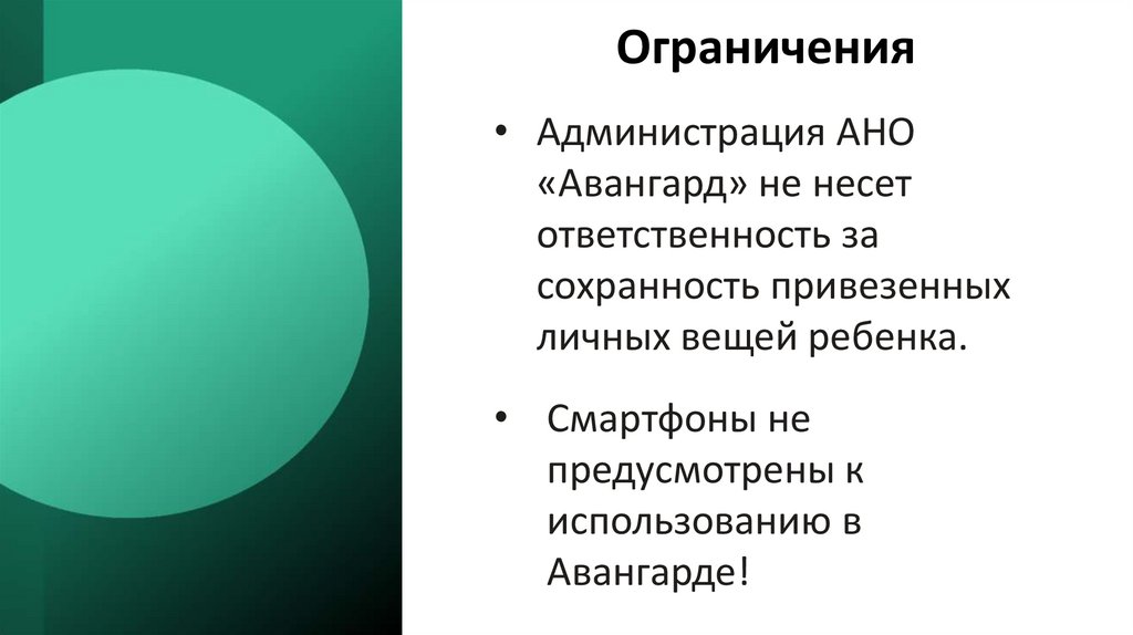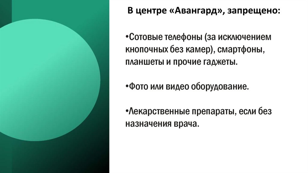 В центре «Авангард», запрещено:•Сотовые телефоны (за исключением