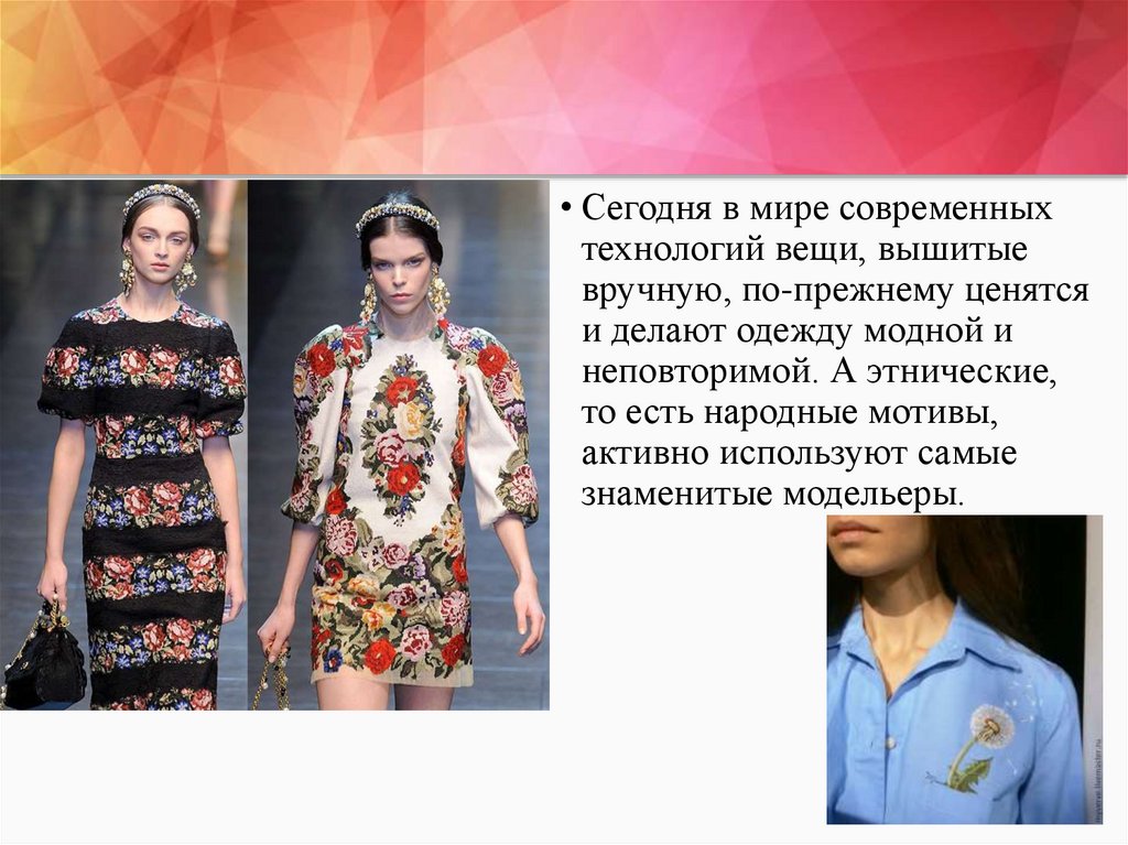 • Сегодня в мире современныхтехнологий вещи, вышитые