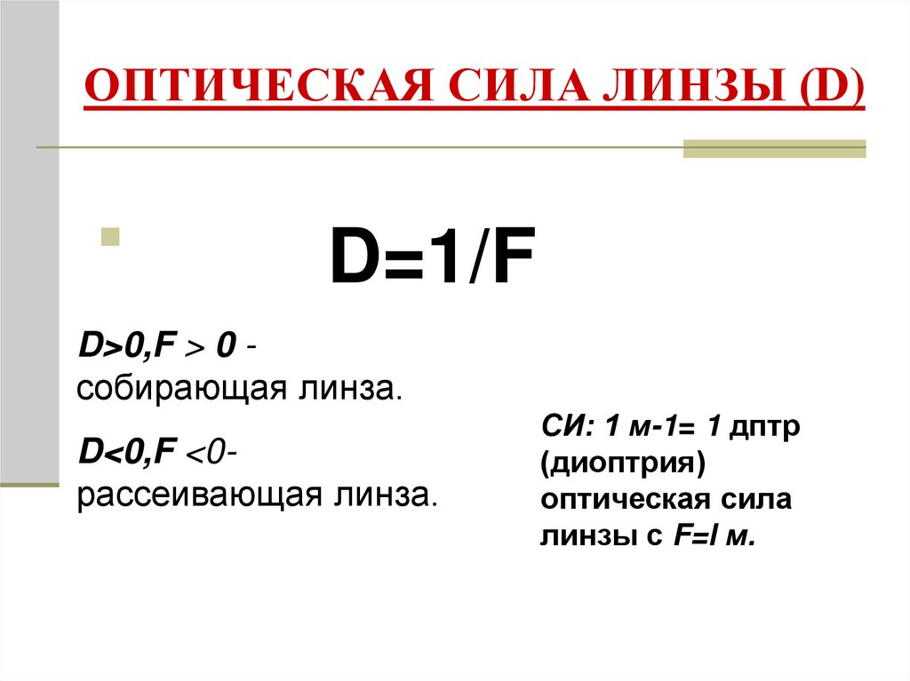 11. ОПТИЧЕСКАЯ СИЛА ЛИНЗЫ (D)