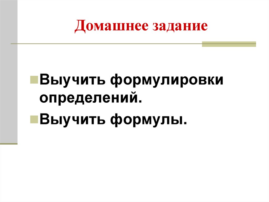 Выучить формулировкиопределений.