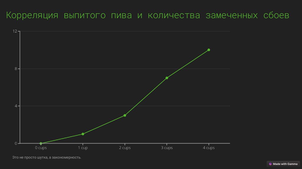 Корреляция выпитого пива и количества замеченных сбоевЭто не просто шутка, а закономерность.