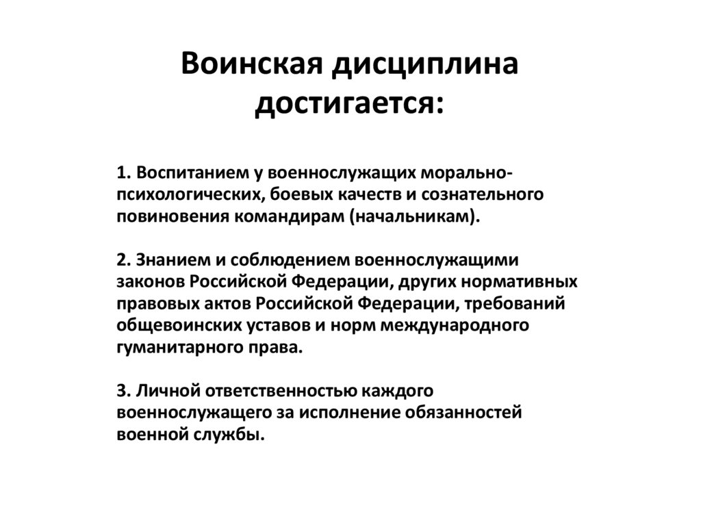 Воинская дисциплина — строгое и точное соблюдениевсеми военнослужащими порядка и правил,