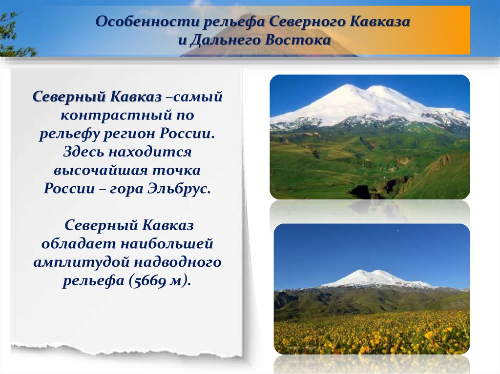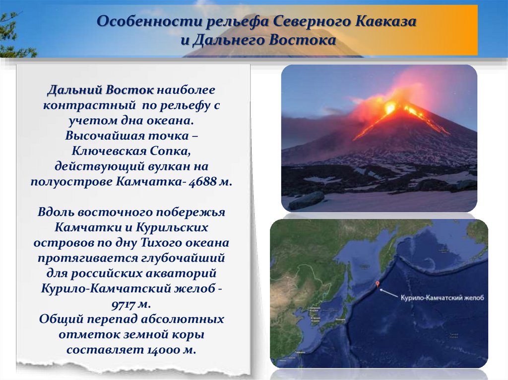 Особенности рельефа Северного Кавказаи Дальнего Востока