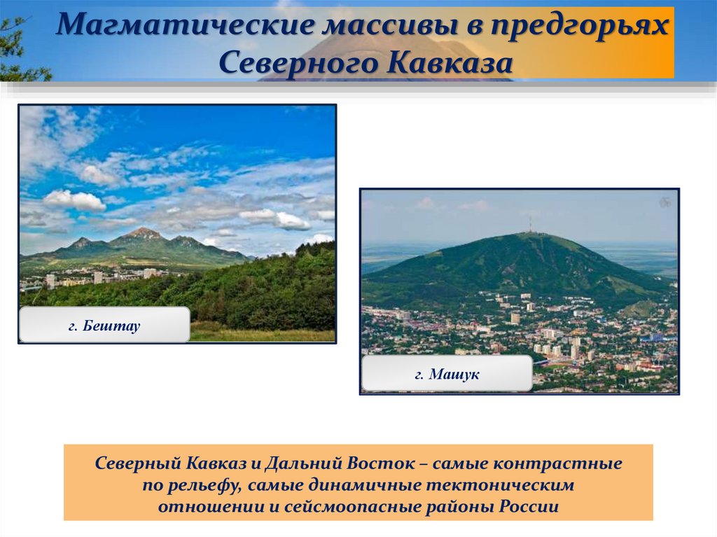 Магматические массивы в предгорьяхСеверного Кавказа