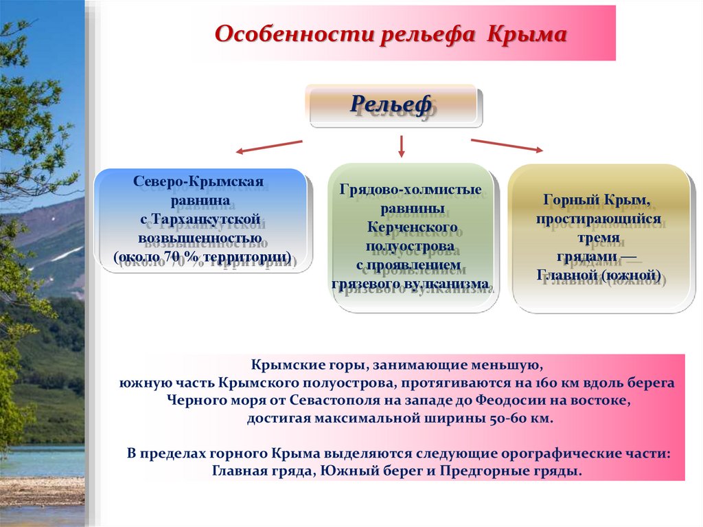 южную часть Крымского полуострова, протягиваются на 160 км вдоль берега