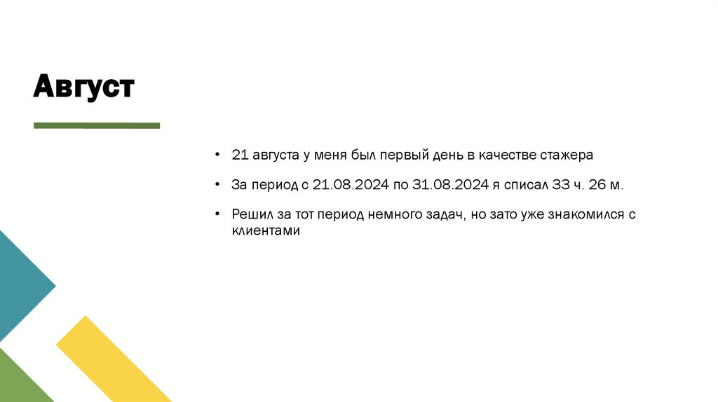 • За период с 21.08.2024 по 31.08.2024 я списал 33 ч. 26 м.