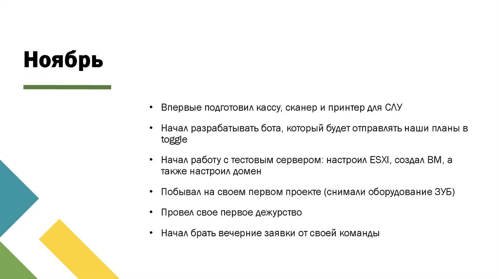 Ноябрь• Впервые подготовил кассу, сканер и принтер для СЛУ
