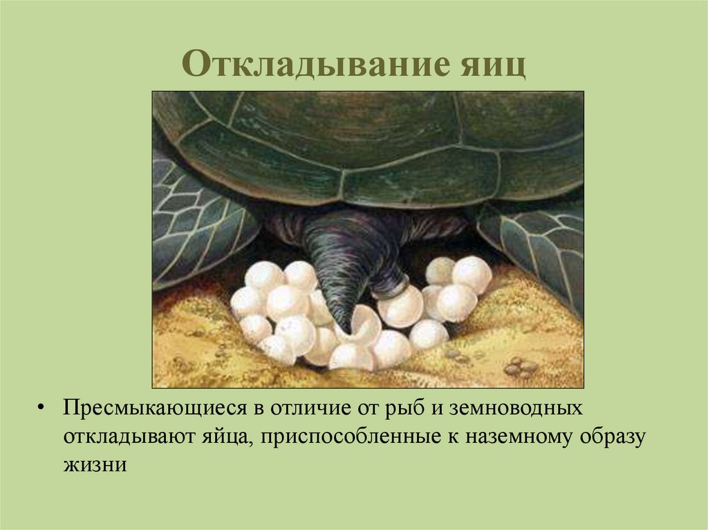 • Пресмыкающиеся в отличие от рыб и земноводныхоткладывают яйца, приспособленные к наземному образу
