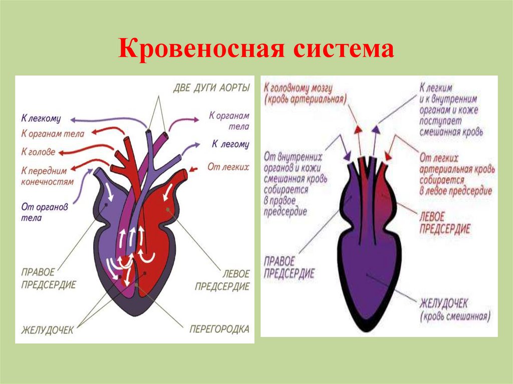 Повторим!Кровеносная система : сердце 3-х камерное , с не полной