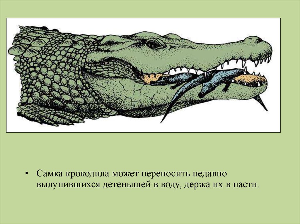 • Самка крокодила может переносить недавновылупившихся детенышей в воду, держа их в пасти.