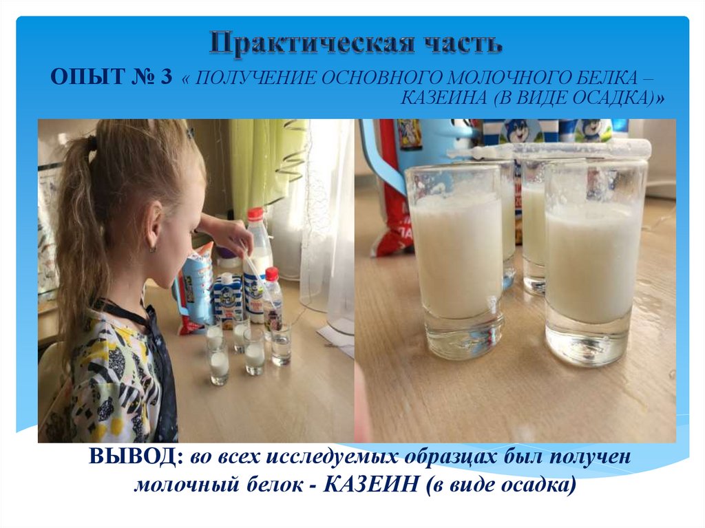 ОПЫТ № 3 « ПОЛУЧЕНИЕ ОСНОВНОГО МОЛОЧНОГО БЕЛКА –КАЗЕИНА (В ВИДЕ ОСАДКА)»
