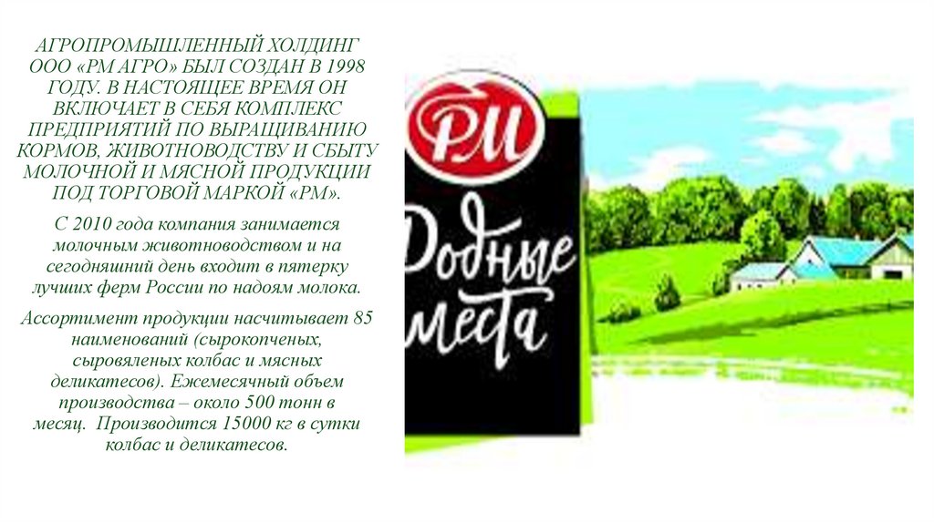 АГРОПРОМЫШЛЕННЫЙ ХОЛДИНГООО «РМ АГРО» БЫЛ СОЗДАН В 1998