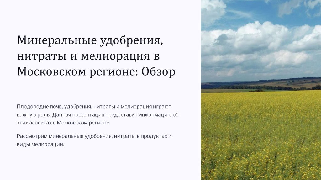 Минеральные удобрения, нитраты и мелиорация в Московском регионе