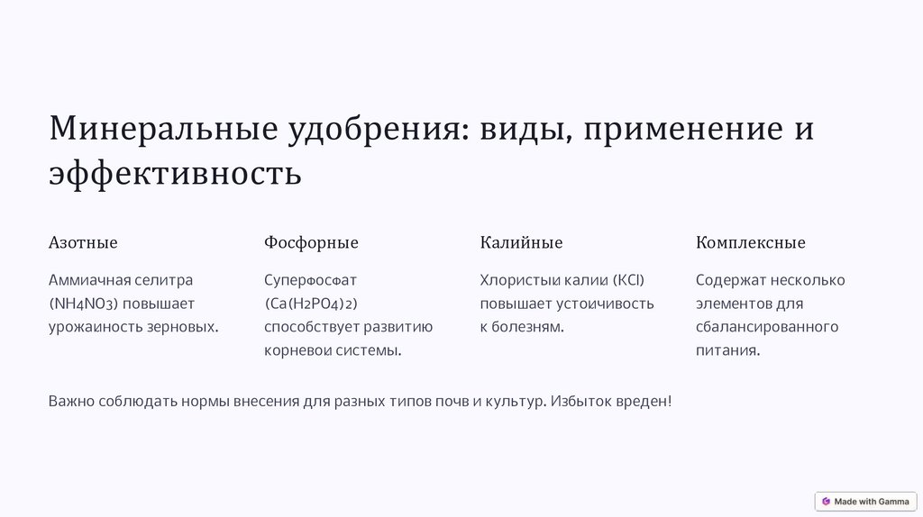 Важно соблюдать нормы внесения для разных типов почв и культур. Избыток вреден!