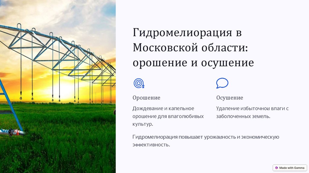 Мелиорация повышает плодородие и улучшает сельское хозяйство.