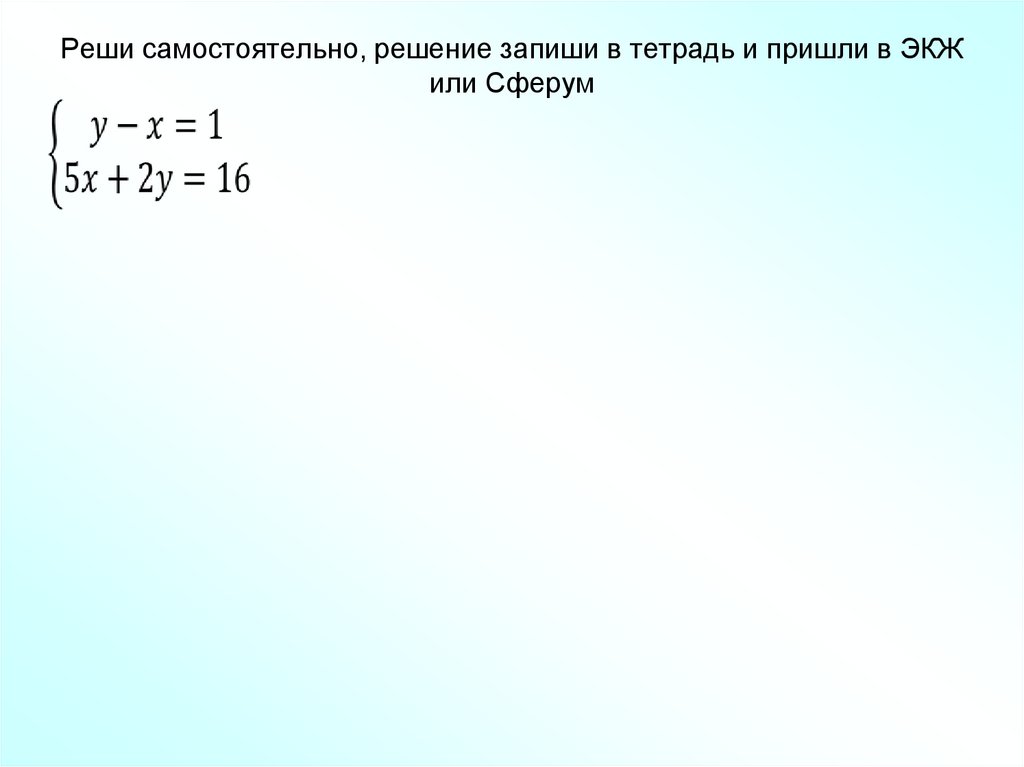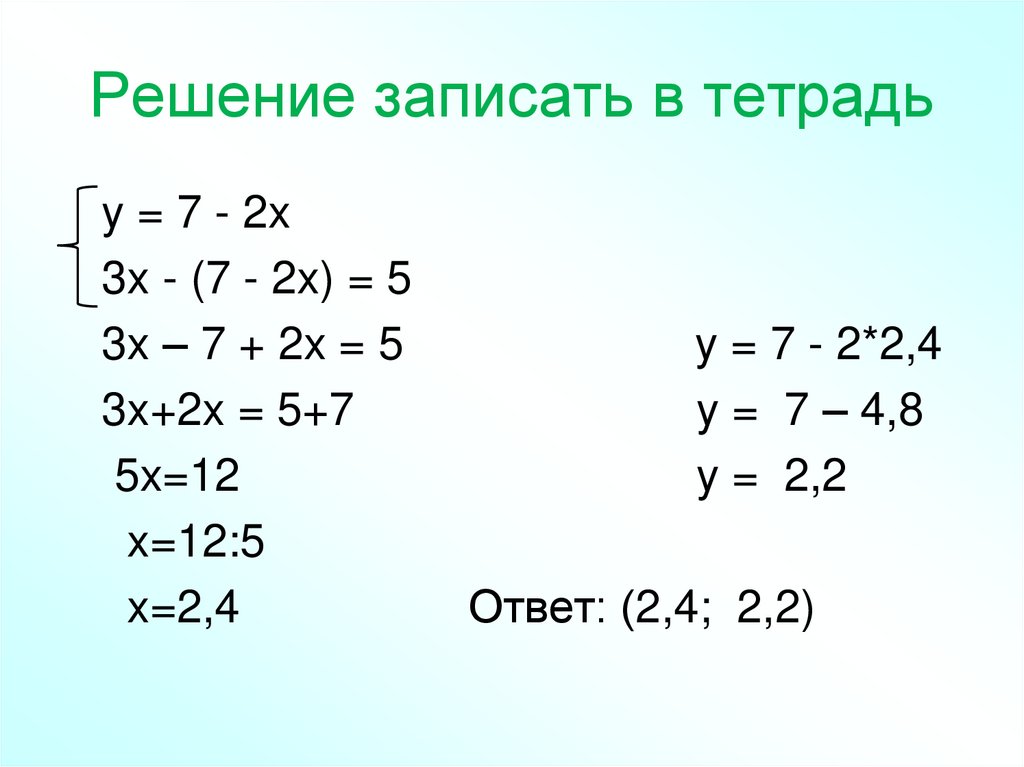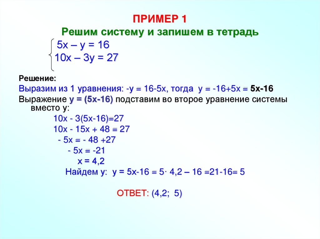 5. ПРИМЕР 1 Решим систему и запишем в тетрадь