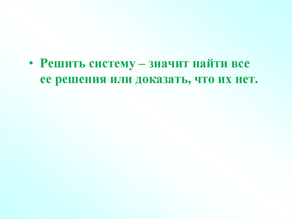 • Решить систему – значит найти всеее решения или доказать, что их нет.