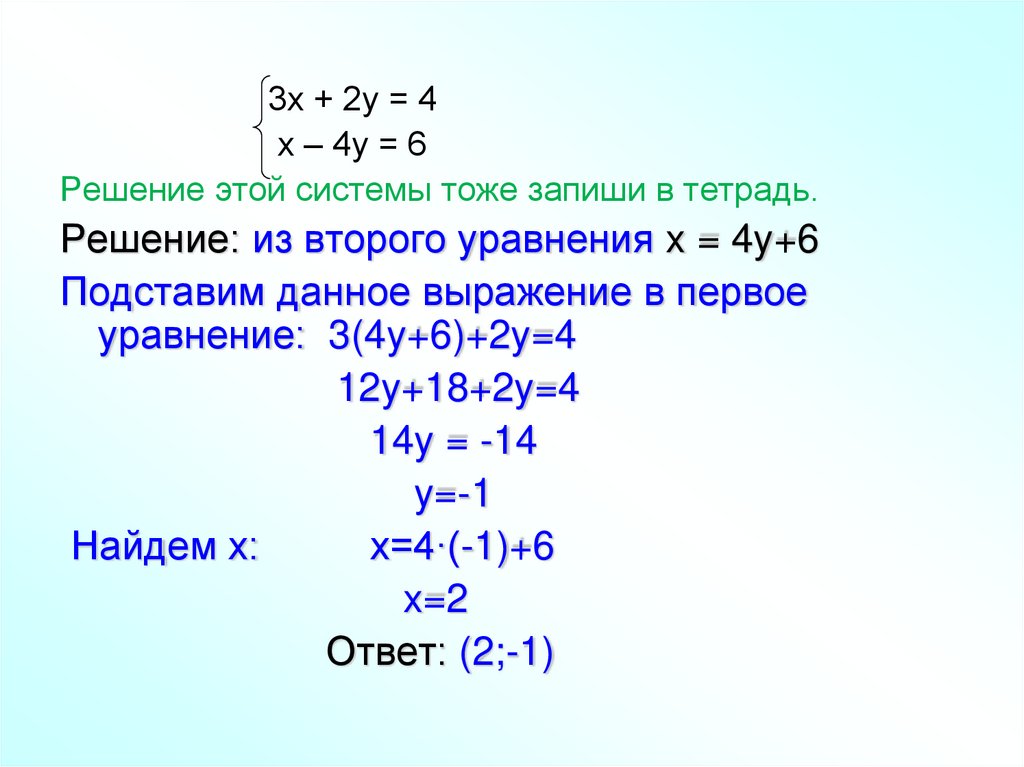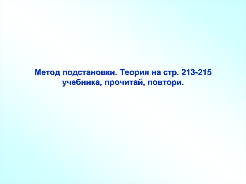 4. Метод подстановки. Теория на стр. 213-215 учебника, прочитай, повтори.