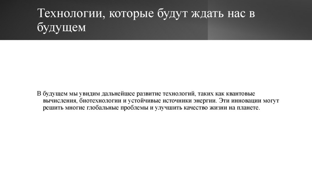 вычисления, биотехнологии и устойчивые источники энергии. Эти инновации могут