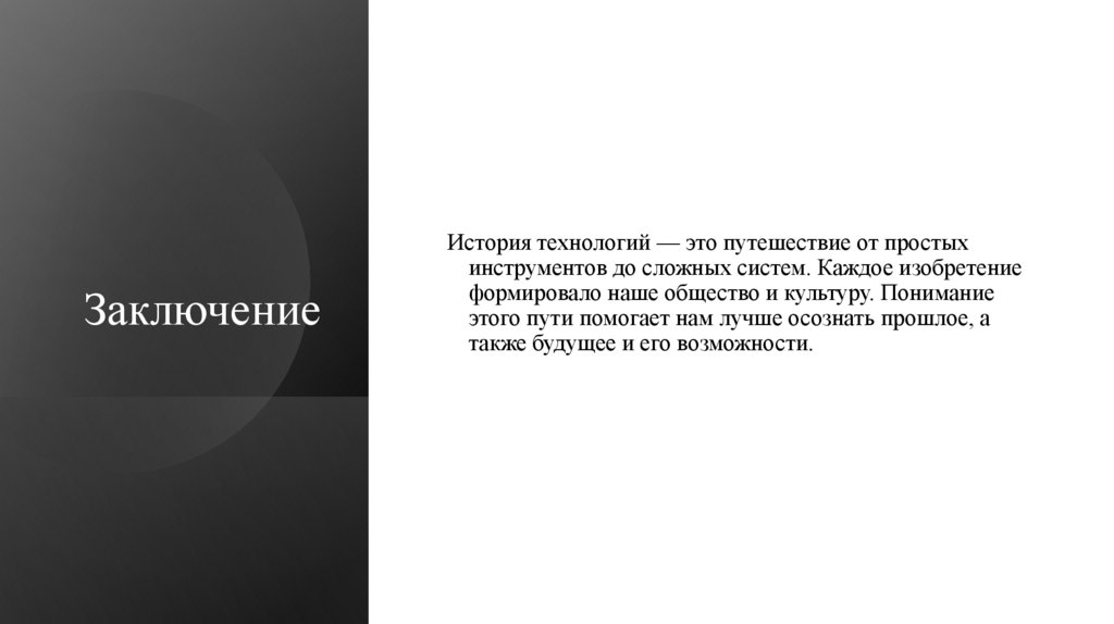 ЗаключениеИстория технологий — это путешествие от простых