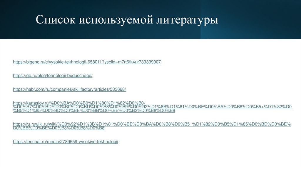 Список используемой литературыhttps://bigenc.ru/c/vysokie-tekhnologii-658011?ysclid=m7rt6tk4ur733339007