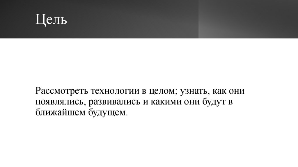 ЦельРассмотреть технологии в целом; узнать, как они