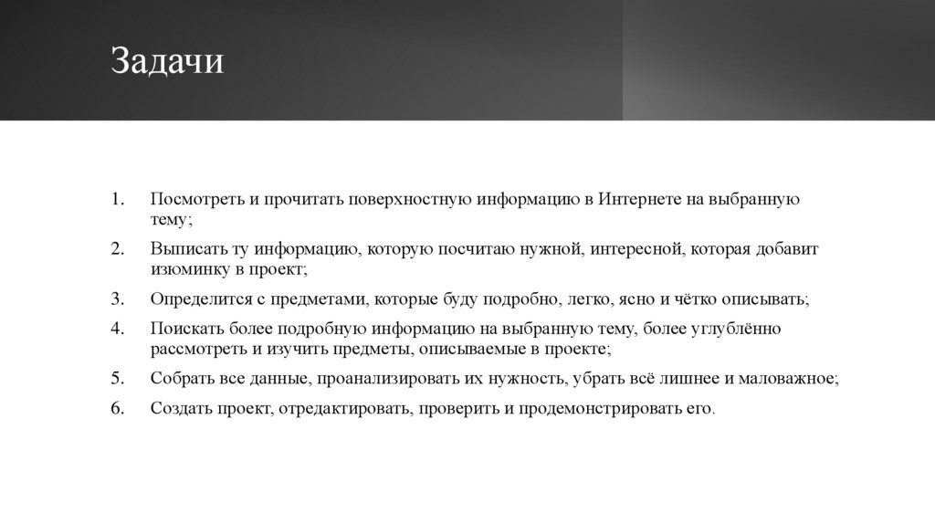 рассмотреть и изучить предметы, описываемые в проекте;