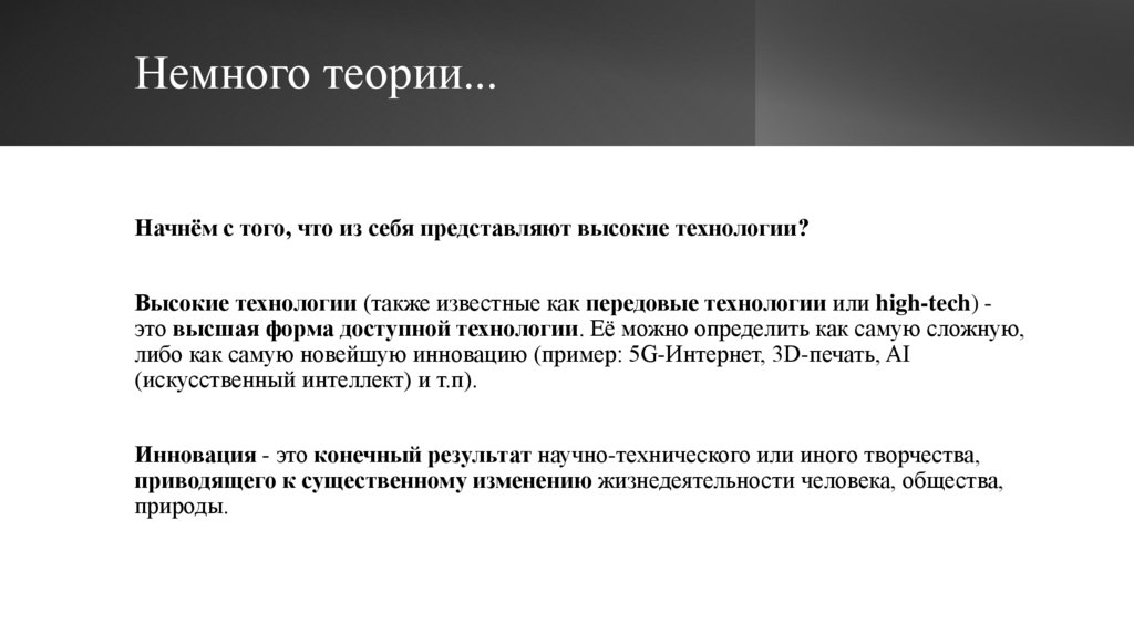 Немного теории...Начнём с того, что из себя представляют высокие технологии?