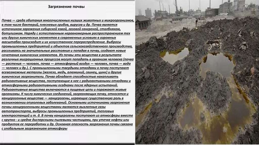 разрушению озонового слоя, существует проблема парникового эффекта; ⦁ Происходит деградация растительного и