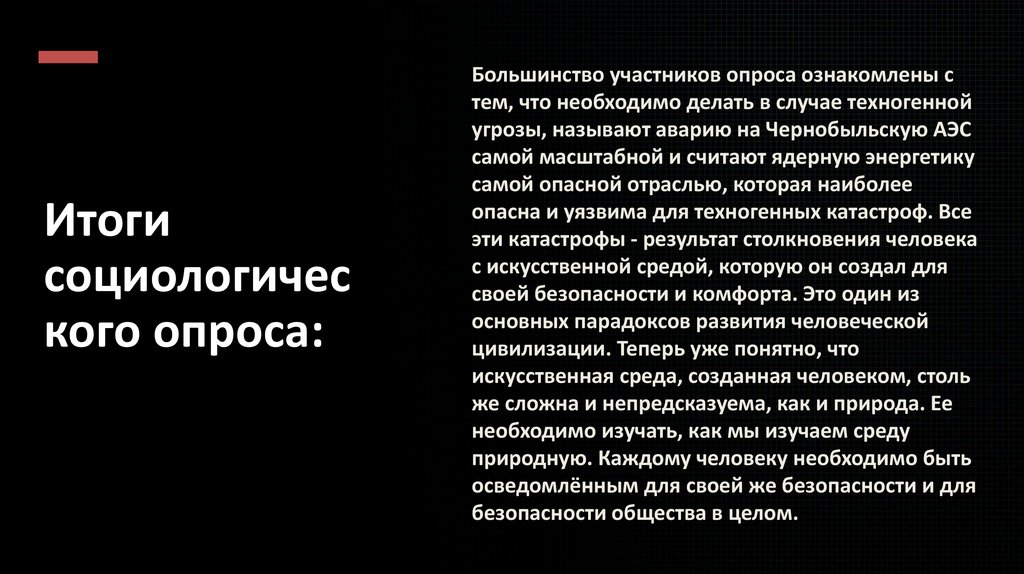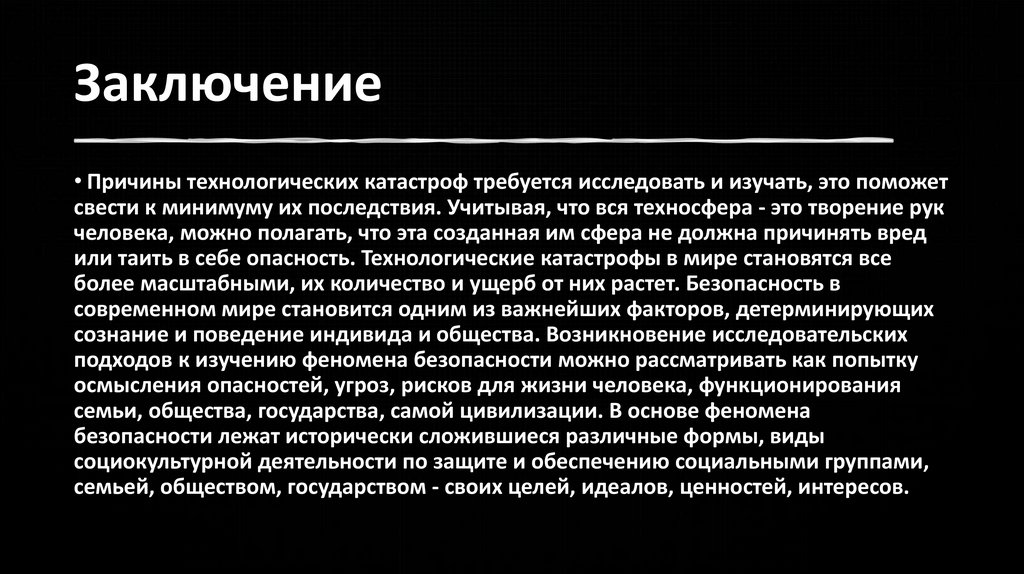Заключение• Причины технологических катастроф требуется исследовать и изучать, это поможет