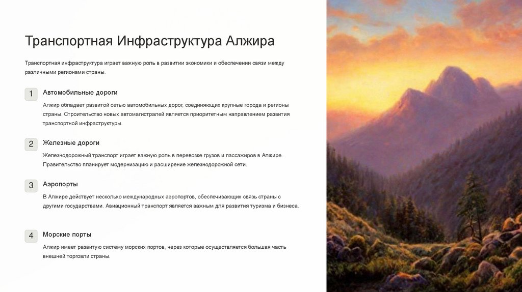 Транспортная Инфраструктура АлжираТранспортная инфраструктура играет важную роль в развитии экономики и обеспечении связи между