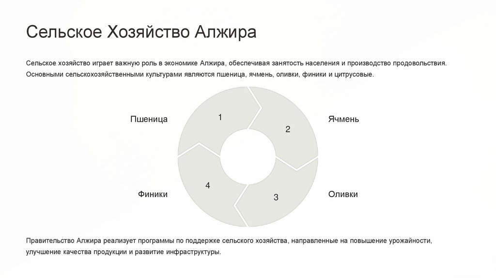 Правительство Алжира реализует программы по поддержке сельского хозяйства, направленные на повышение урожайности,