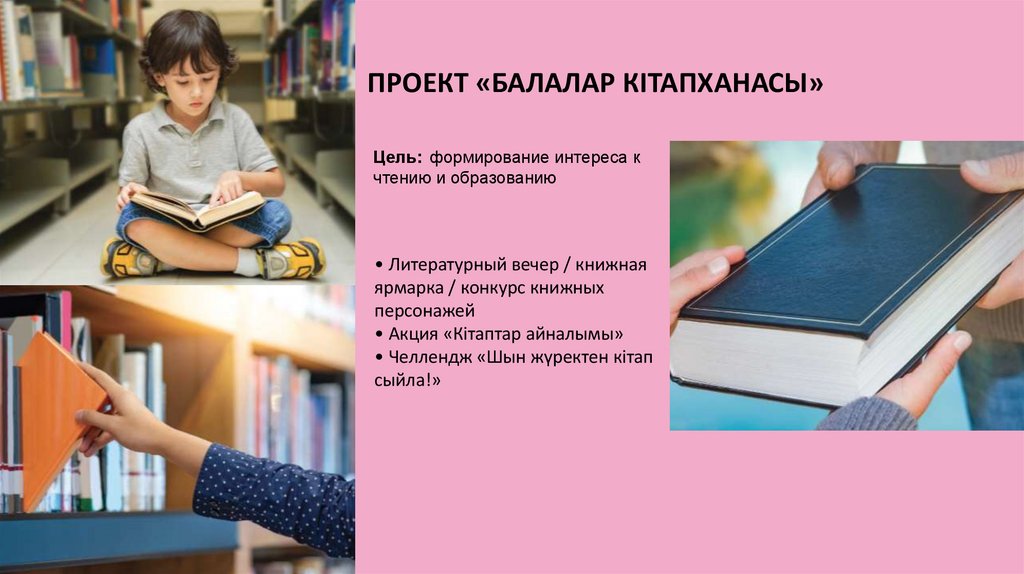ПРОЕКТ «БАЛАЛАР КІТАПХАНАСЫ»Цель: формирование интереса к