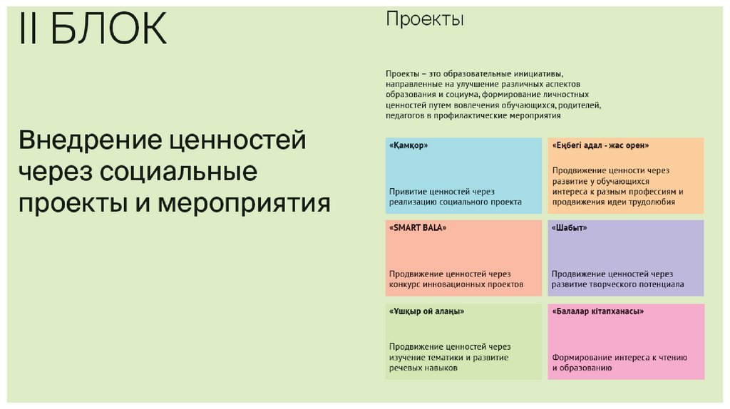 ПРОЕКТ «ҰШҚЫР ОЙ АЛАҢЫ»Цель: продвижение ценностей через