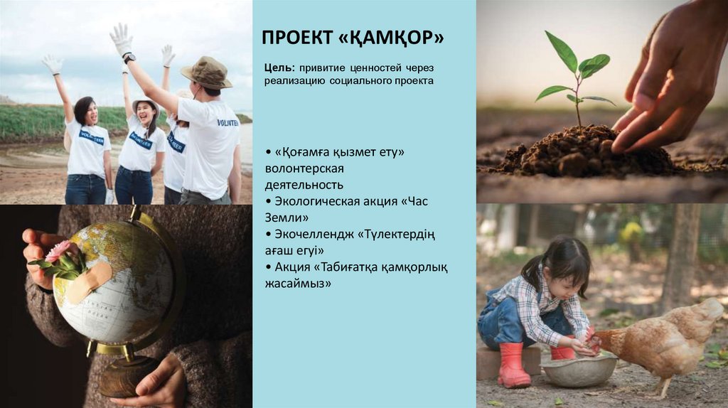 ПРОЕКТ «ҚАМҚОР»Цель: привитие ценностей через