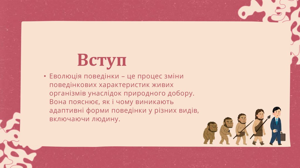 Вступ• Еволюція поведінки – це процес зміни