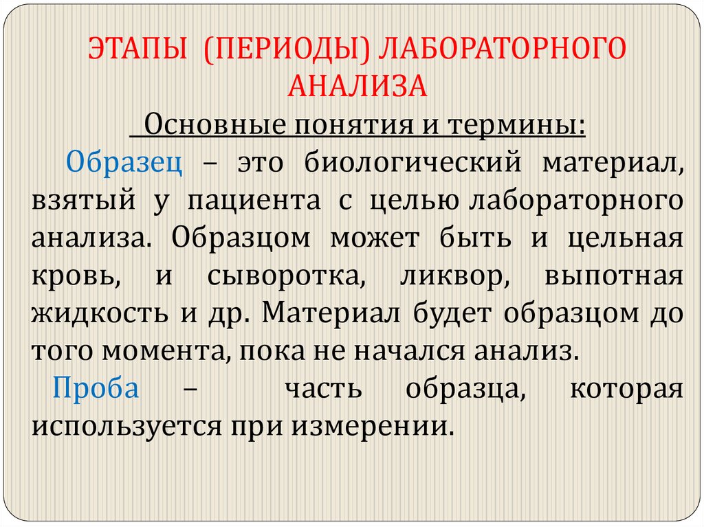 ЭТАПЫ (ПЕРИОДЫ) ЛАБОРАТОРНОГОАНАЛИЗА