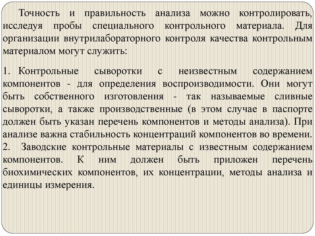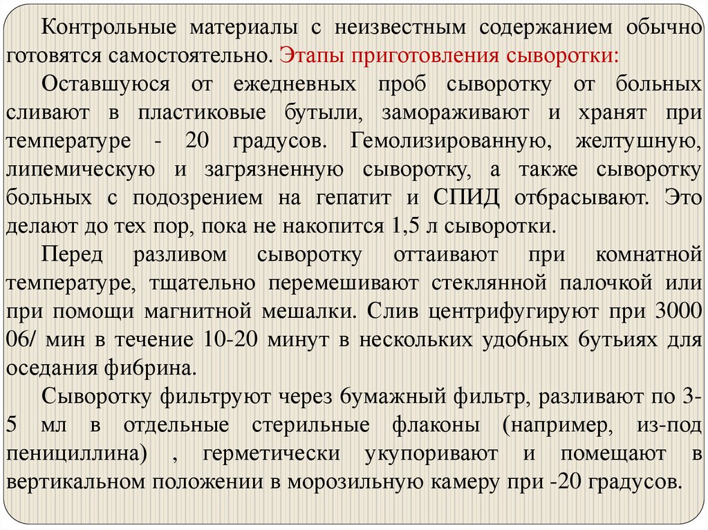 Контрольные материалы с неизвестным содержанием обычноготовятся самостоятельно. Этапы приготовления сыворотки: