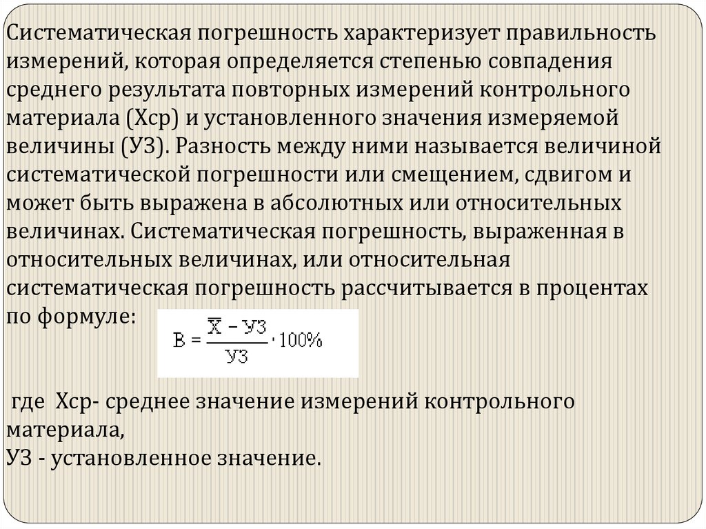 Систематическая погрешность характеризует правильностьизмерений, которая определяется степенью совпадения