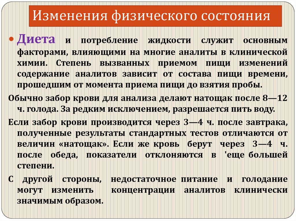 величин «натощак». Если же кровь берут через 3—4 ч.