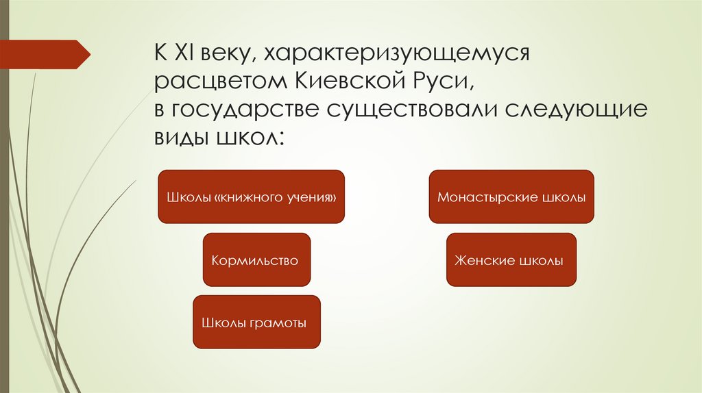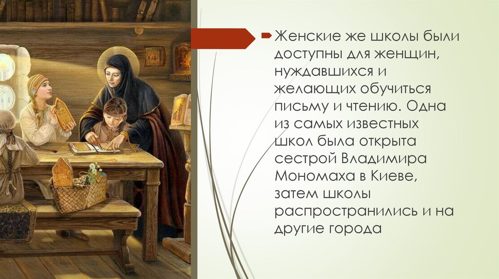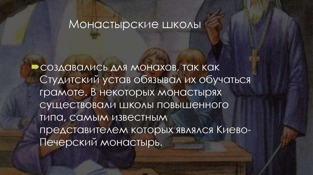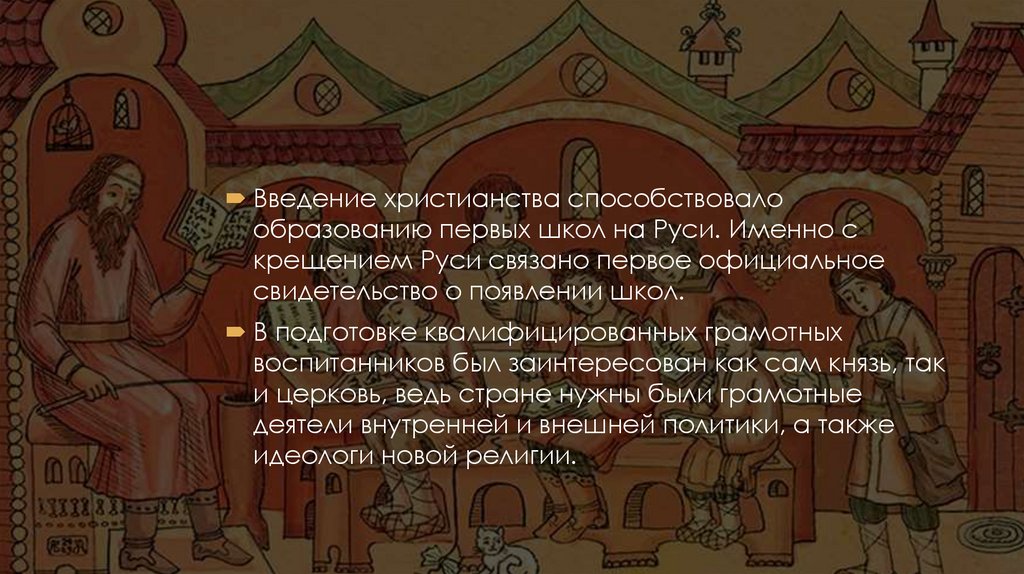 Введение христианства способствовалообразованию первых школ на Руси. Именно с